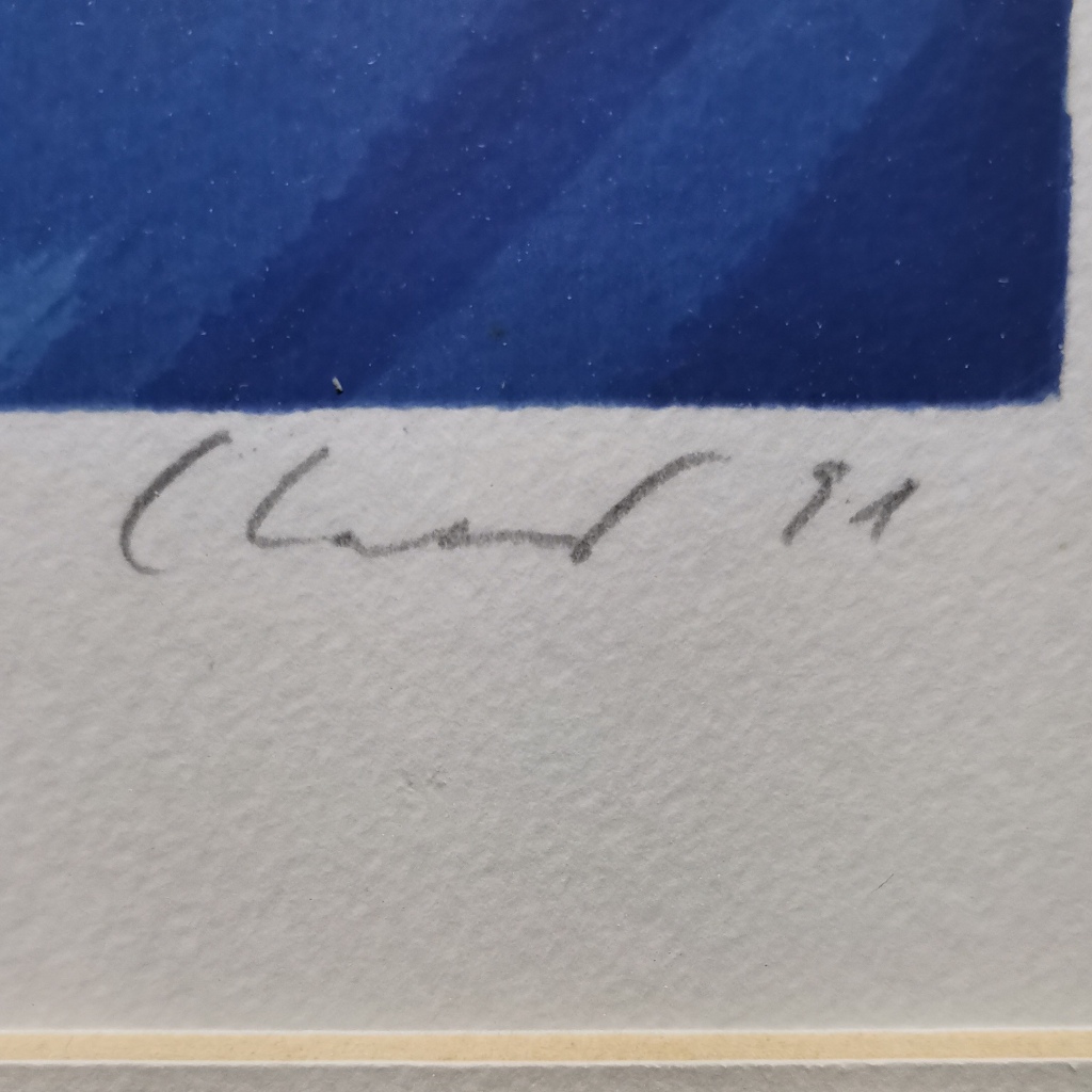 Tiragem 13/25 H.C. (Hors Commerce). Assinada e datada 91. Assinatura não identificada. Passpartout e moldura lacada a negro com falhas. Dim: 35 X 43 cm Total com moldura: 64,5 X 78 cm.