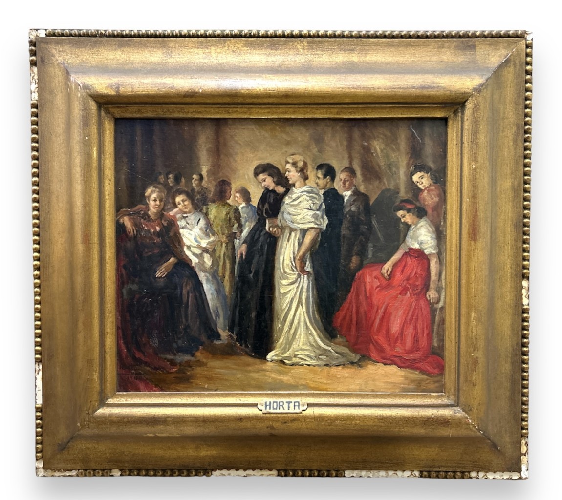 Email € 75 "Reunião", pintura a óleo sobre madeira. Assinada e datada de 1944. Emoldurada. Dim. 34,5 x 43 cm. € 60 € 75 Solicitar informação adicional Voltar a: Leilão 393 - Antiguidades e Coleccionismo "Reunião", pintura a óleo sobre madeira. Assinada e datada de 1944. Emoldurada. Dim. 34,5 x 43 cm. € 60 € 75