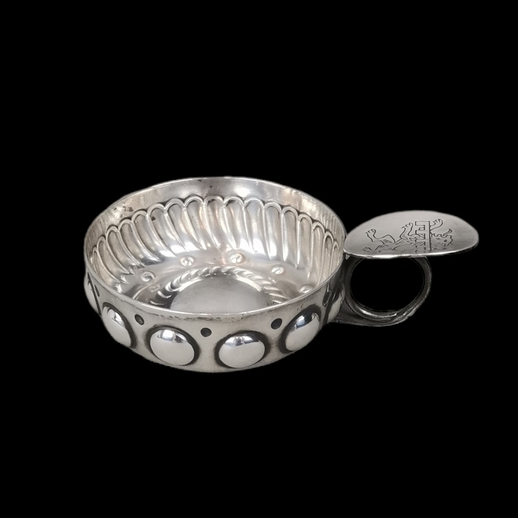 Prata estrangeira. Decoração relevada com pega cinzelada com leão. Sem marcas, ao abrigo do Decreto-Lei 120/2017, de 15 de Setembro - art. 2º, n.º 2, alínea c). Peso: 67 grs Dim: 3 X 10 cm.