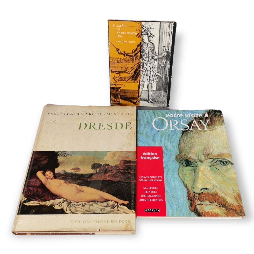 Les Chefs-D'Oeuvre des musées de Dresde. In folio. Enc editorial com sobrecapa. 163 pgs. Capa cansada. Votre visite à Orsay. 1999. In-4º. Br. 191 pgs, 300 ilustrações. Catálogo de Salão de Antiguidades de 1970. Br. Manchas de humidade.