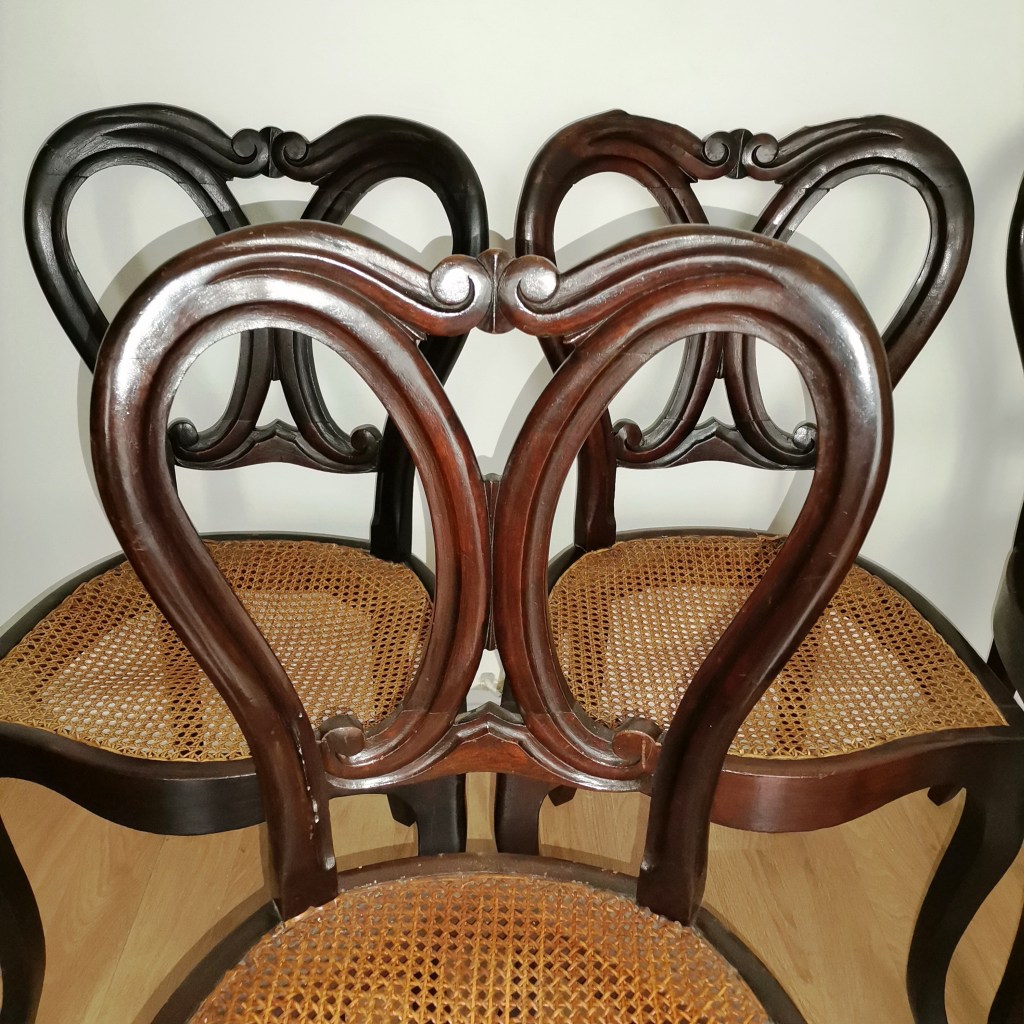 Email € 10 Cinco cadeiras romanticas. Assentos em palhinha a precisar de restauro. Sinais de xilófagos.Alt: 86 cm. € 10 € 10 Solicitar informação adicional Voltar a: Leilão 231 - Antiguidades e Colecionismo Cinco cadeiras romanticas. Assentos em palhinha a precisar de restauro. Sinais de xilófagos.Alt: 86 cm. € 10 € 10