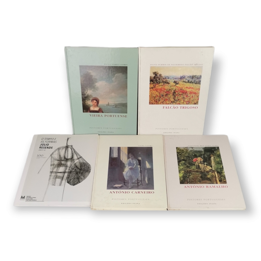 Edições Inapa. António Carneiro, António Ramalho, Falcão Trigoso e Vieira Portuense. Junta-se catálogo de exposição de Júlio Resende realizada no Museu Internacional de Escultura Contemporânea. Sinais de uso.