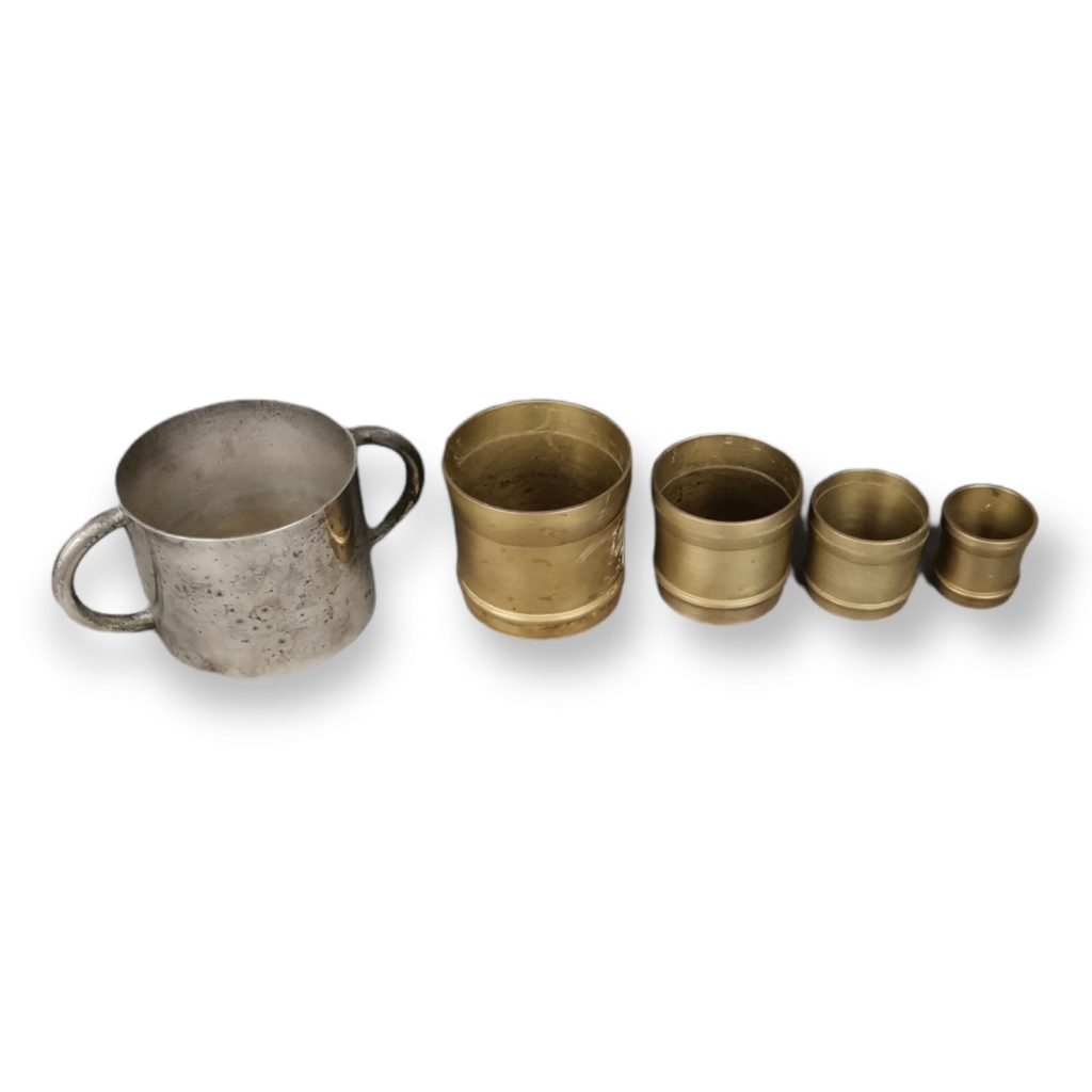 Email € 0 Quatro medidas em bronze torneado. Junta-se recipiente em metal com duas asas. Sinais de uso.Alt (maior): 7 cm. € 10 € 0 Solicitar informação adicional Voltar a: Leilão 287 - Antiguidades Quatro medidas em bronze torneado. Junta-se recipiente em metal com duas asas. Sinais de uso.Alt (maior): 7 cm. € 10 € 0