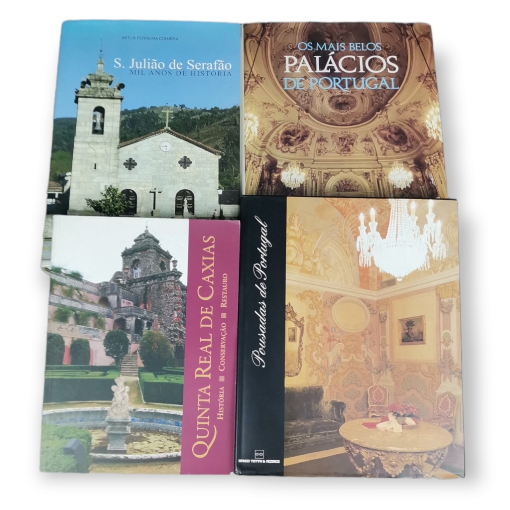 I- Pousadas de Portugal. Enc editorial com s/c.160 pgs. II-Os mais Belos Castelos de Portugal. Enc editorial com s/c. 255 pgs. III- Quinta Real de Caxias. Br.200 pgs. IV- S. Julião de Serafão. Enc editorial com s/c. 369 pgs. Todos muito bem ilustrados.