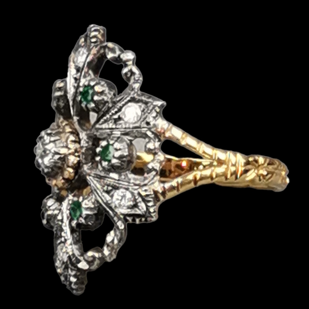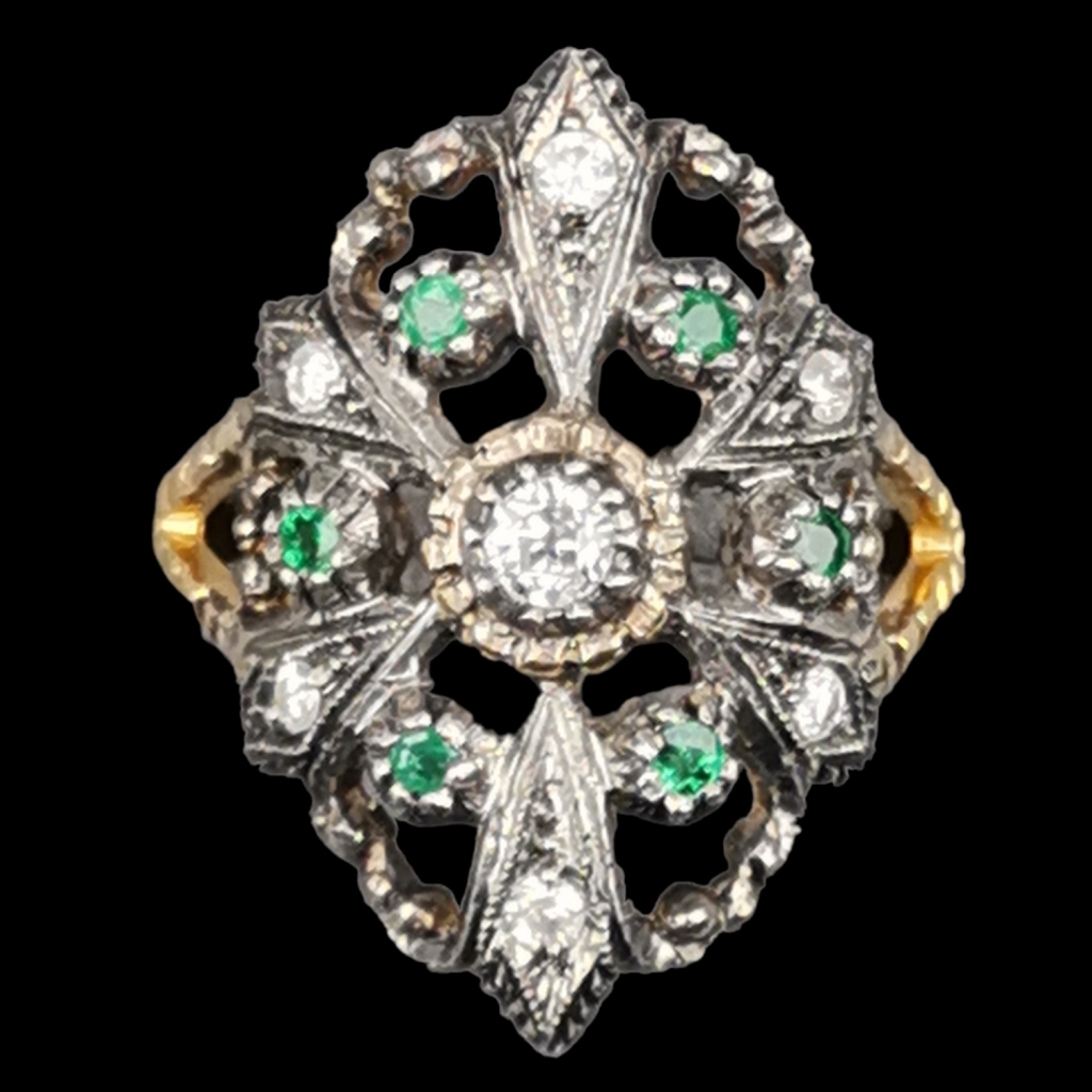 Email € 350 Anel em ouro e prata. Cravejado com um brilhante ao centro rodeado de esmeraldas e diamantes. Peso: 5,57 grs. Ouro de 800/1000 e prata de 835/1000. € 350 € 350 Solicitar informação adicional Voltar a: Leilão 399 - Antiguidades, Coleccionismo e Livros Anel em ouro e prata. Cravejado com um brilhante ao centro rodeado de esmeraldas e diamantes. Peso: 5,57 grs. Ouro de 800/1000 e prata de 835/1000. € 350 € 350
