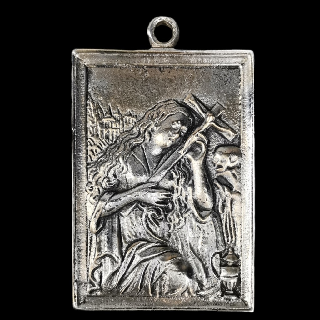 Email € 48 Placa relevada representando Maria Madalena ajoelhada segurando a Cruz. Dim: 9,5 X 6,5 cm. € 15 € 48 Solicitar informação adicional Voltar a: Leilão 335 - Antiguidades Placa relevada representando Maria Madalena ajoelhada segurando a Cruz. Dim: 9,5 X 6,5 cm. € 15 € 48