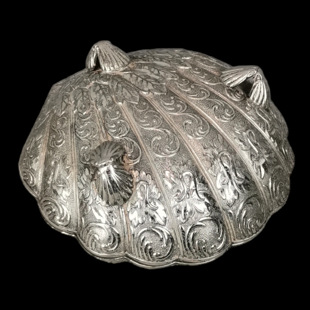 Email € 0 Caixa em forma de vieira. Metal prateado com decoração relevada e ricamente cinzelada. Falta da dobradiça. Sinais de uso e oxidação.Dim: 17 cm. € 10 € 0 Solicitar informação adicional Voltar a: Leilão 352 - Oportunidades e Coleccionismo Caixa em forma de vieira. Metal prateado com decoração relevada e ricamente cinzelada. Falta da dobradiça. Sinais de uso e oxidação.Dim: 17 cm. € 10 € 0
