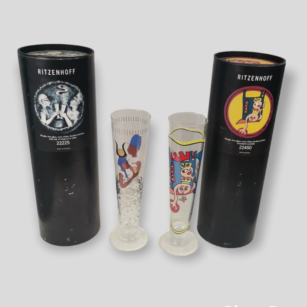 Email € 22 Dois copos de cerveja em vidro pintado, por Damien Ligier e Oscar Tusquets. Edição da marca Alemã Ritzenhoff. Nas caixas originais.Alt: 25 cm. € 10 € 22 Solicitar informação adicional Voltar a: Leilão 352 - Oportunidades e Coleccionismo Dois copos de cerveja em vidro pintado, por Damien Ligier e Oscar Tusquets. Edição da marca Alemã Ritzenhoff. Nas caixas originais.Alt: 25 cm. € 10 € 22
