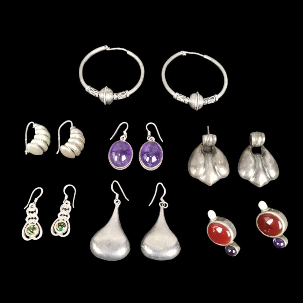 Diversos modelos. Alguns com pedras duras. Sinais de uso. Sem marcas, ao abrigo do Decreto-Lei 120/2017, de 15 de Setembro - art. 2º, n.º 2, alínea c). Peso total: 76,67 grs.Dim (maior): 5,5 cm.