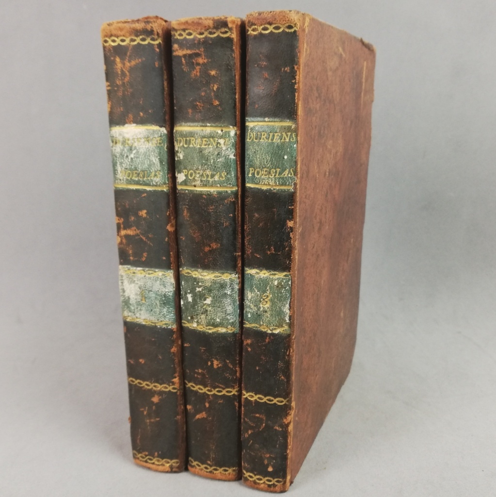 Lisboa, na Impressão Regia Tomos I a III. In-4º 3 vols. De 383, 345, 264 págs. Encadernações em inteira de carneira da época.Bom estado, uma com leve esfoliação. Obra rara e valiosa de um amigo de Bocage e notável poeta