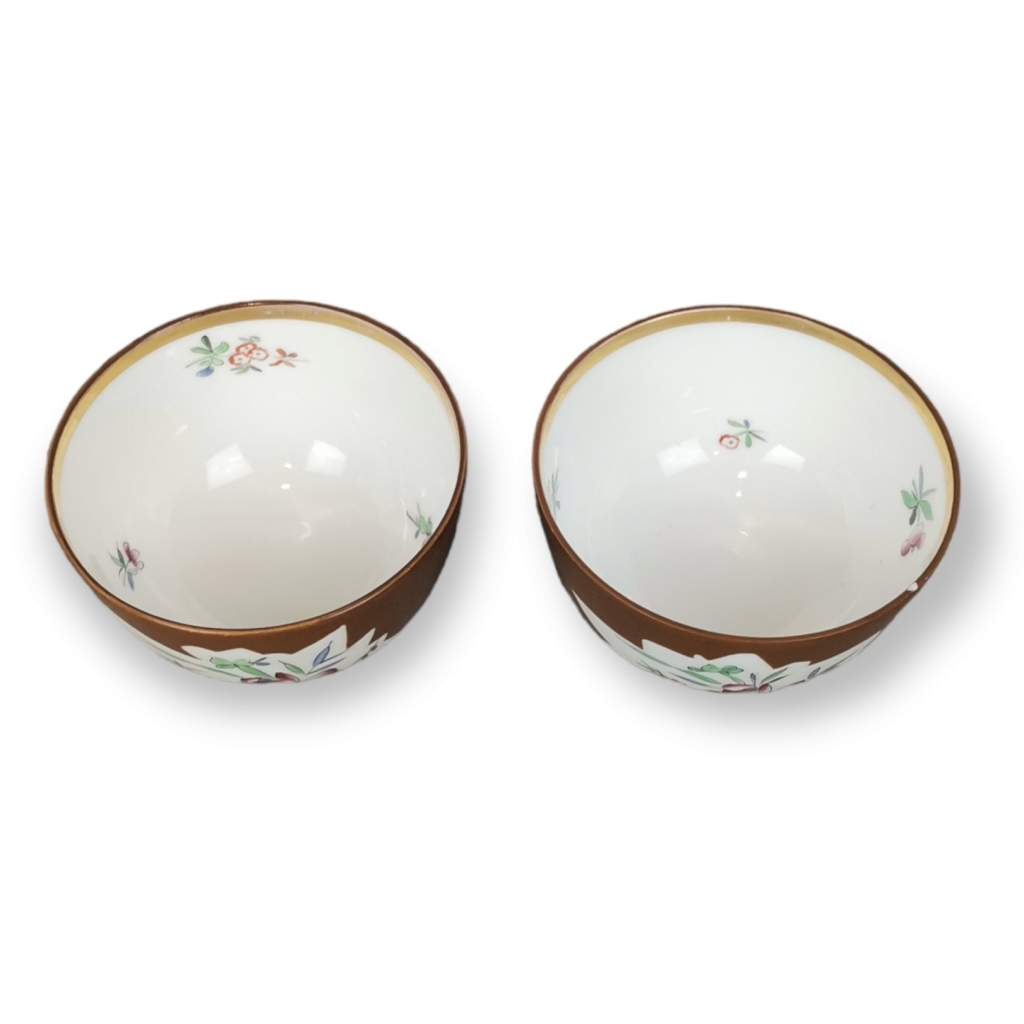 Porcelana da fábrica da Vista Alegre. Decoração chocolate com reservas. Ao gosto da porcelana Chinesa de exportação. Marca nº 31 (1924-1947). Ínfima falhina num bordo. Dim: 9 cm.