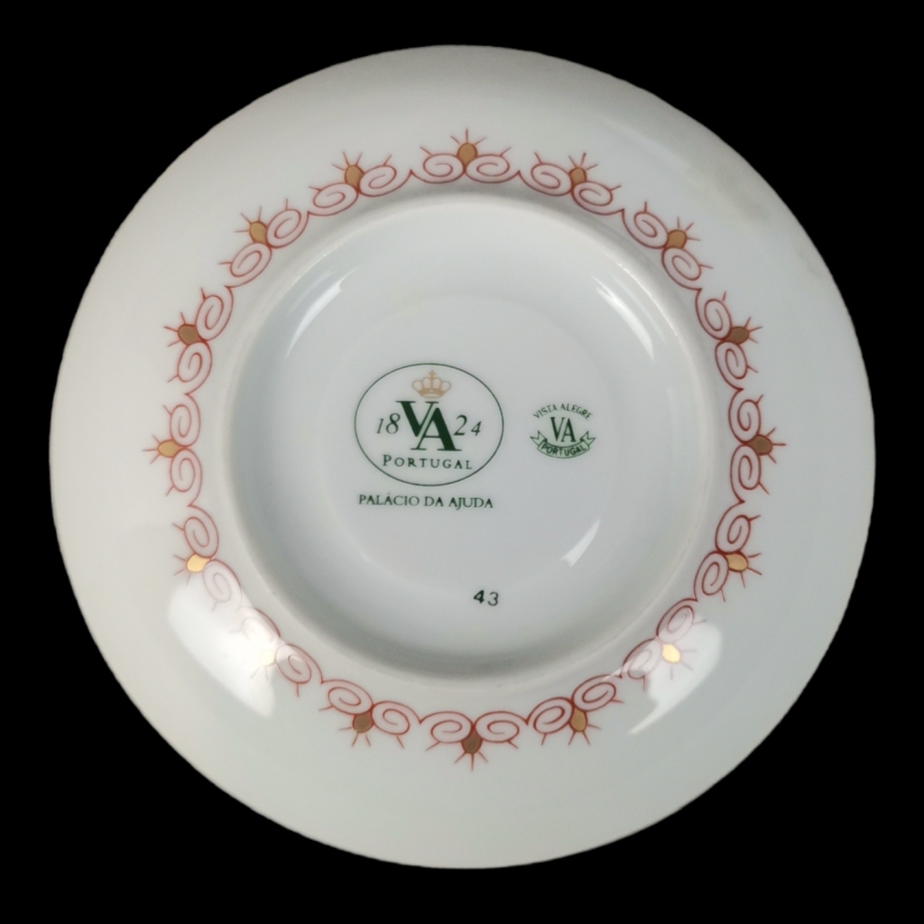 Porcelana da fábrica da Vista Alegre. Uma para chá decorada a ouro e outra para café com decoração policromada "Palácio da Ajuda". Marcas 36 e 38 (1980). Alt: 7 e 5 cm.