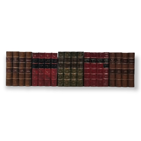Cinco porta discos simulando lombadas de livros encadernados. Cada módulo acondiciona 10 discos. Sinais de uso. Dim: 17 X 13 cm (cada) Total: 17 X 65 cm.