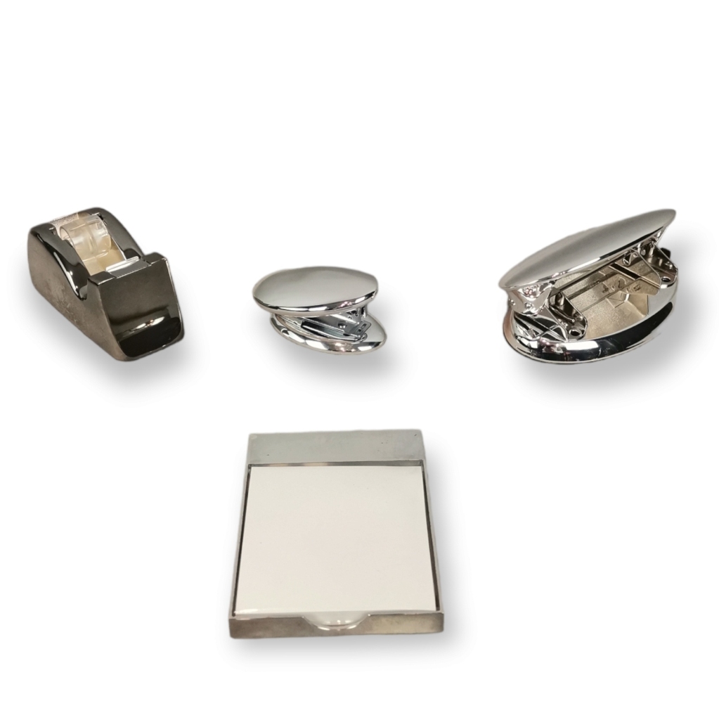 Email € 0 Metal cromado. Agrafador, furador, suporte para fita cola e caixa para bloco de notas. Dim (maior): 13 X 7,5 cm. € 20 € 0 Solicitar informação adicional Voltar a: Leilão 387 - Coleccionismo Metal cromado. Agrafador, furador, suporte para fita cola e caixa para bloco de notas. Dim (maior): 13 X 7,5 cm. € 20 € 0