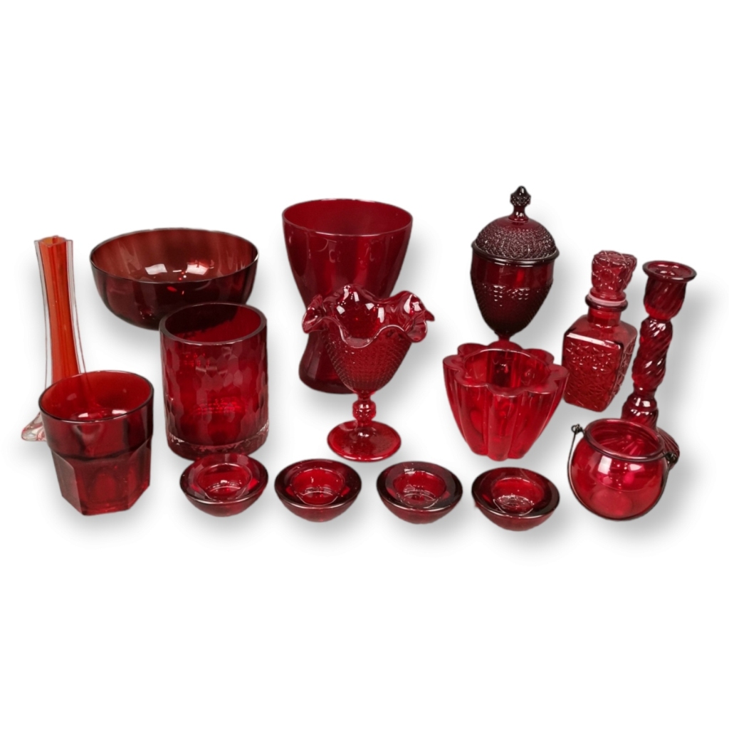 Email € 16 Quinze peças em vidro ruby.Alt (maior): 19,5 cm. € 15 € 16 Solicitar informação adicional Voltar a: Leilão 392 - Antiguidades e Coleccionismo Quinze peças em vidro ruby.Alt (maior): 19,5 cm. € 15 € 16