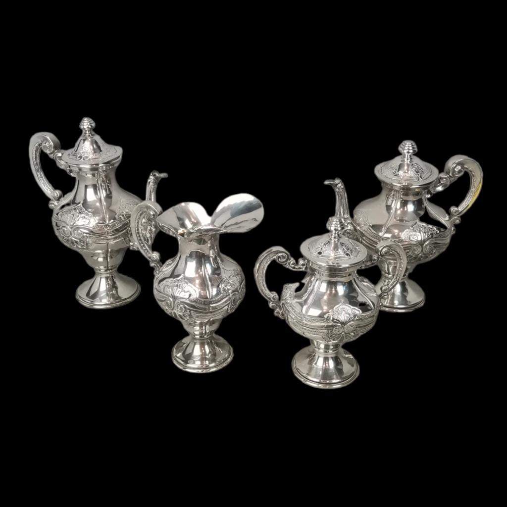 Email € 0 Bule, cafeteira, leiteira e açucareiro. Casquinha com decoração relevada com concheados.Alt (cafeteira): 27,5 cm. € 190 € 0 Solicitar informação adicional Voltar a: Leilão 392 - Antiguidades e Coleccionismo Bule, cafeteira, leiteira e açucareiro. Casquinha com decoração relevada com concheados.Alt (cafeteira): 27,5 cm. € 190 € 0