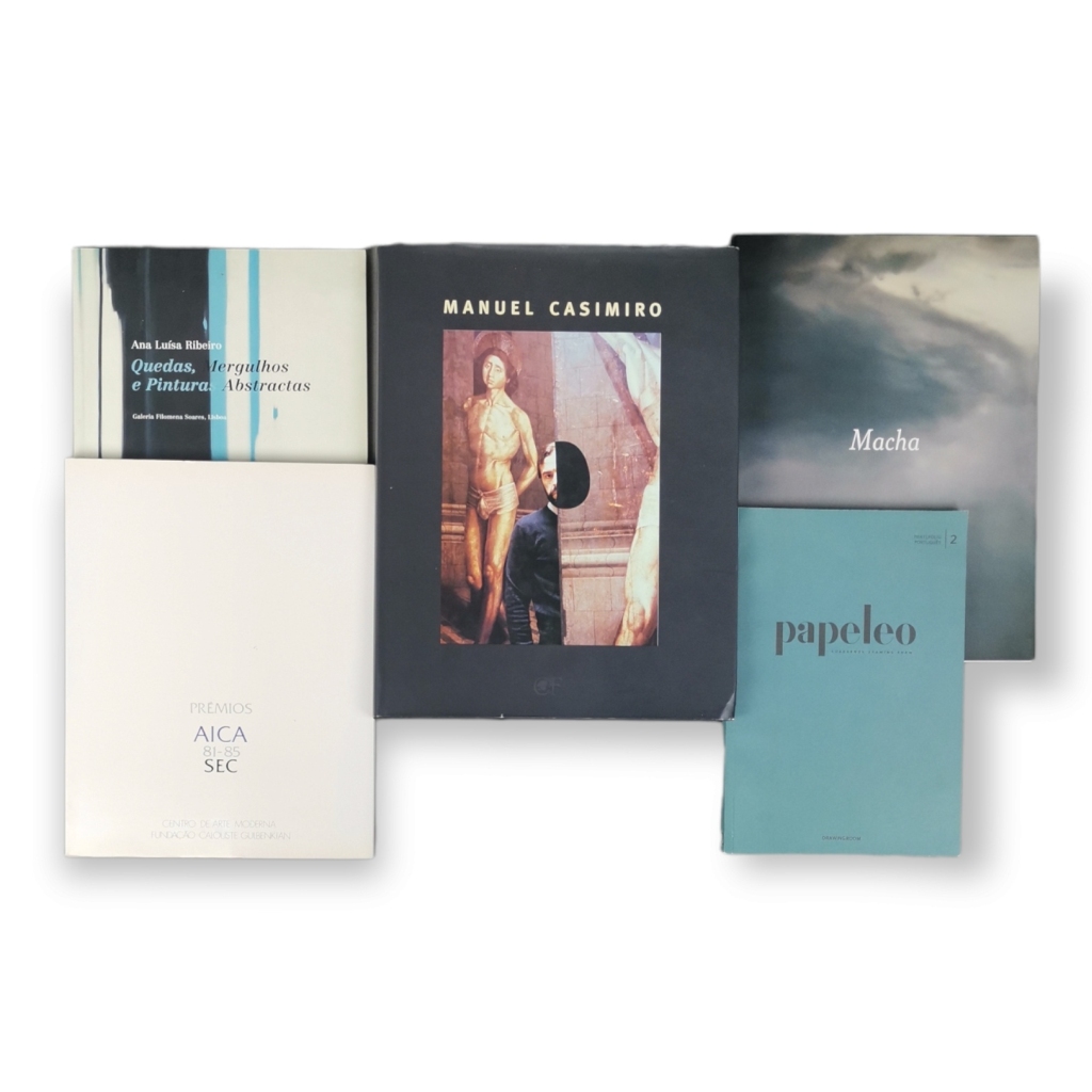 Catálogos: I - Manuel Casimiro, II - Galeria Filomena Soares -Quedas, Mergulhos e Pinturas Abstractas, III - Papeleo - Cuadernos Drawing Room, IV - Macha, V- Prémios Aica 81-85. FCG