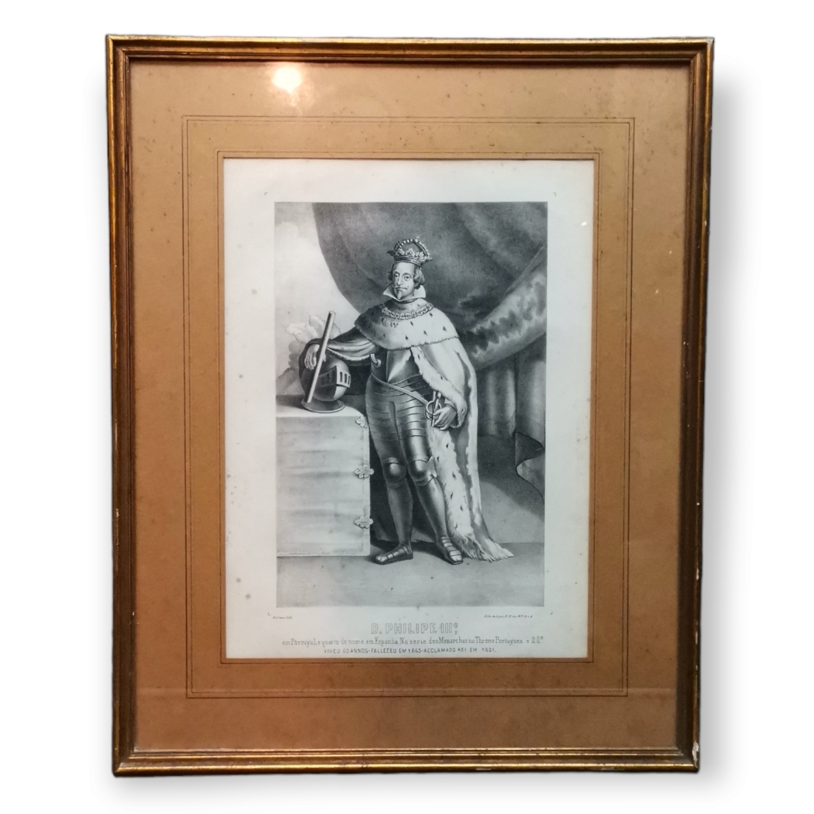 Email € 0 Litografia a negro. Retrato do Rei Filipe III. Picos de acidez. Passpartout e moldura dourada.Dim: 26 X 17 cm.Total com moldura: 44 X 36 cm. € 10 € 0 Solicitar informação adicional Voltar a: Leilão 398 - Coleccionismo Litografia a negro. Retrato do Rei Filipe III. Picos de acidez. Passpartout e moldura dourada.Dim: 26 X 17 cm.Total com moldura: 44 X 36 cm. € 10 € 0